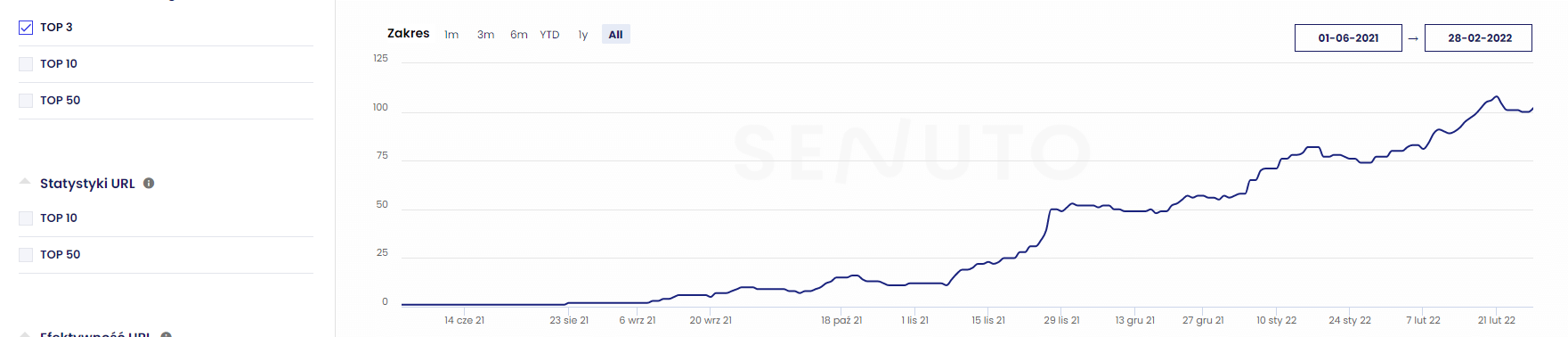 Od tamtego momentu widoczność w TOP 3 (co jest najbardziej pożądanym zakresem) stale rośnie: