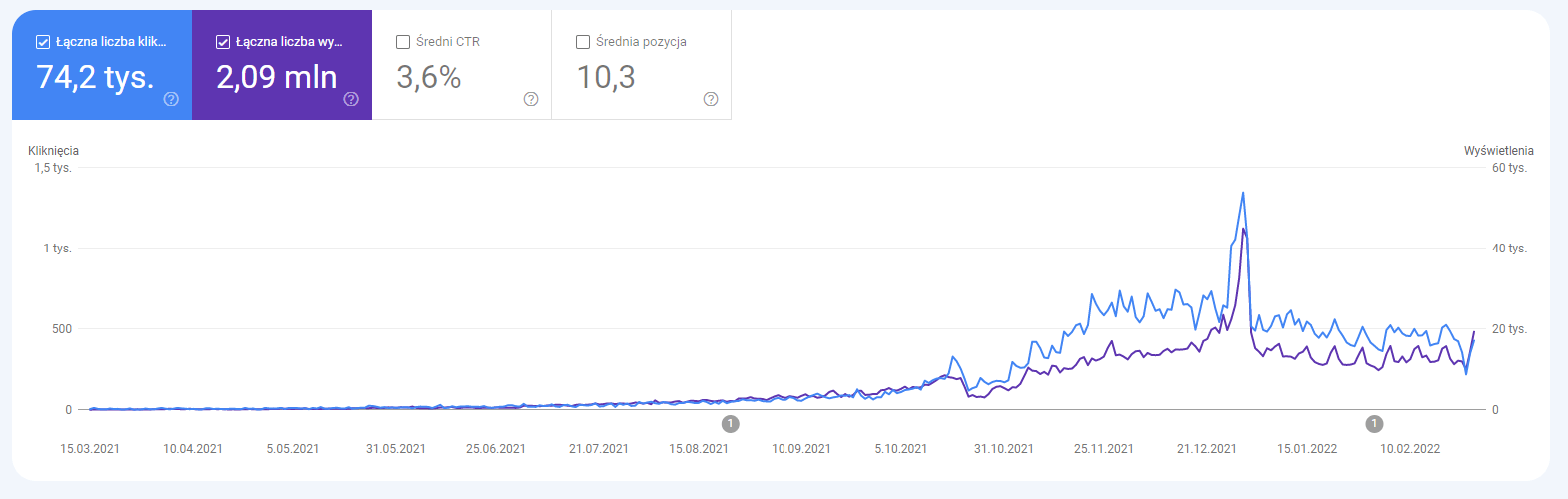Większa liczba kliknięć i wyświetleń na przełomie grudnia i stycznia może wynikać z okresu sylwestrowego oraz zwiększenia kosztów akcyzy w roku 2022.