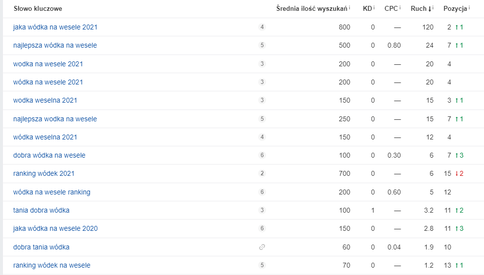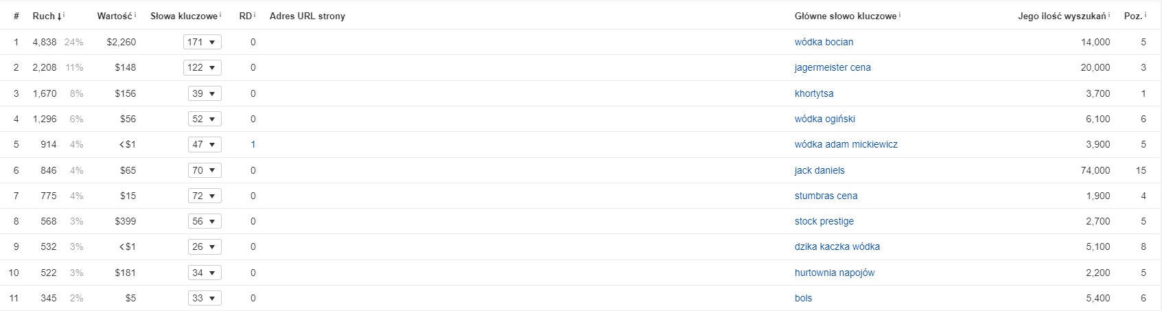 Dzięki odpowiedniej optymalizacji witryny udało nam się zbudować widoczność w zakresie TOP 10 na bardzo konkurencyjne frazy w branży alkoholowej: